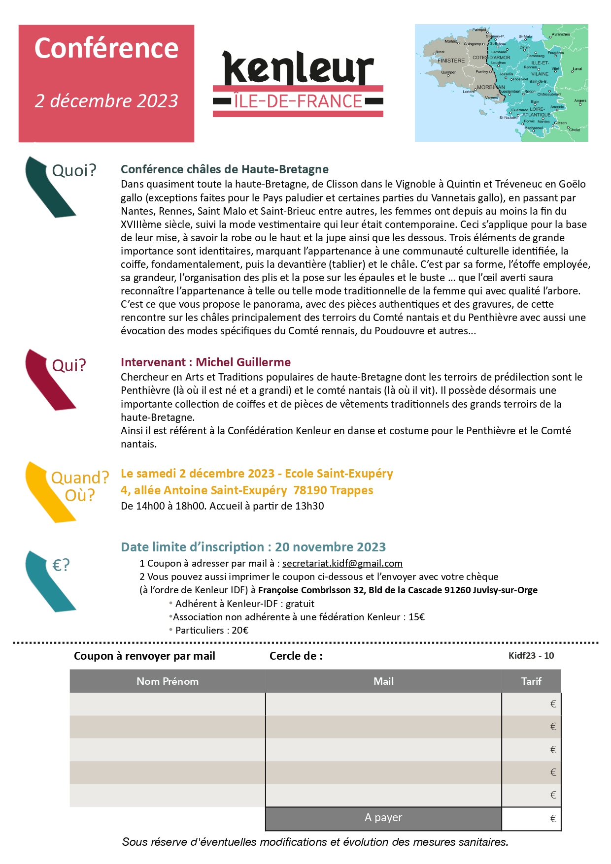 C’est ce que vous propose le panorama, avec des pièces authentiques et des gravures, de cette rencontre sur les châles principalement des terroirs du Comté nantais et du Penthièvre avec aussi une évocation des modes spécifiques du Comté rennais, du Poudouvre et autres.