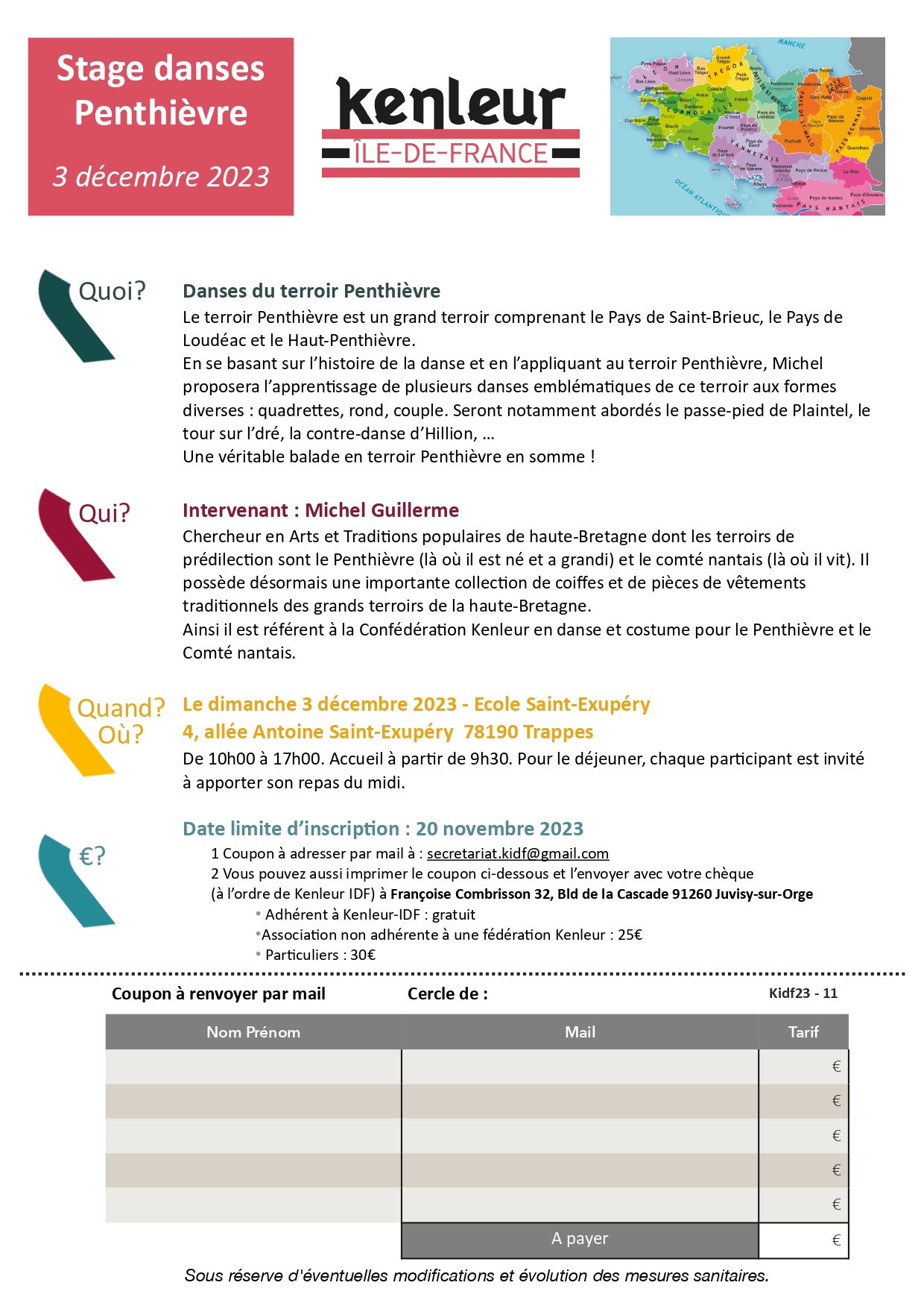 Seront notamment abordés le passe-pied de Plaintel, le tour sur l’dré, la contre-danse d’Hillion, etc..