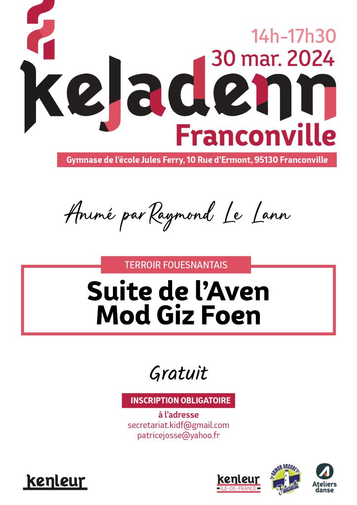 Raymond nous parlera du terroir fouesnantais. Au cours de ce stage, nous étudierons la suite de l’Aven mod giz foen. Le stage sera complété par des éléments sur le costume et le terroir.
