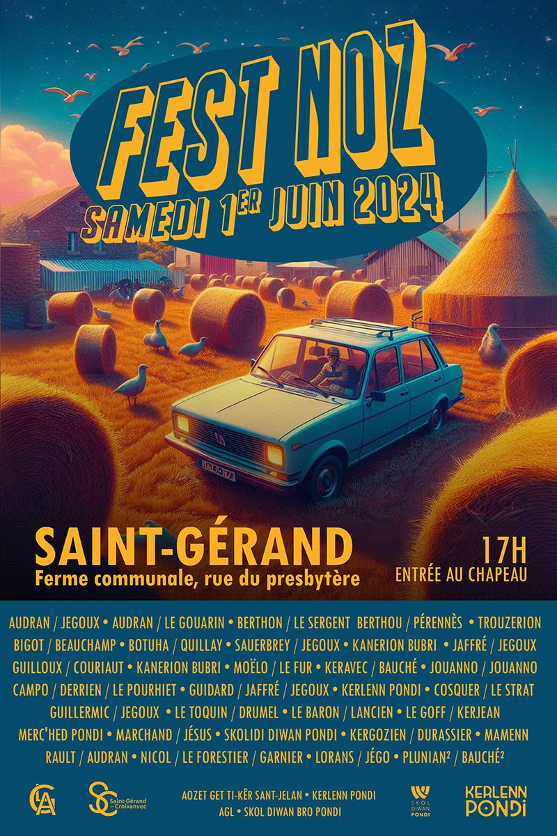 Une soirée de fête à la ferme communale de Saint-Gérand, organisée par Kerlenn Pondi en collaboration avec la mairie de Saint-Gérand-Croixanvec, l’Association Géranaise des Loisirs et Skol Diwan Bro Pondi, avec un plateau exeptionnel !