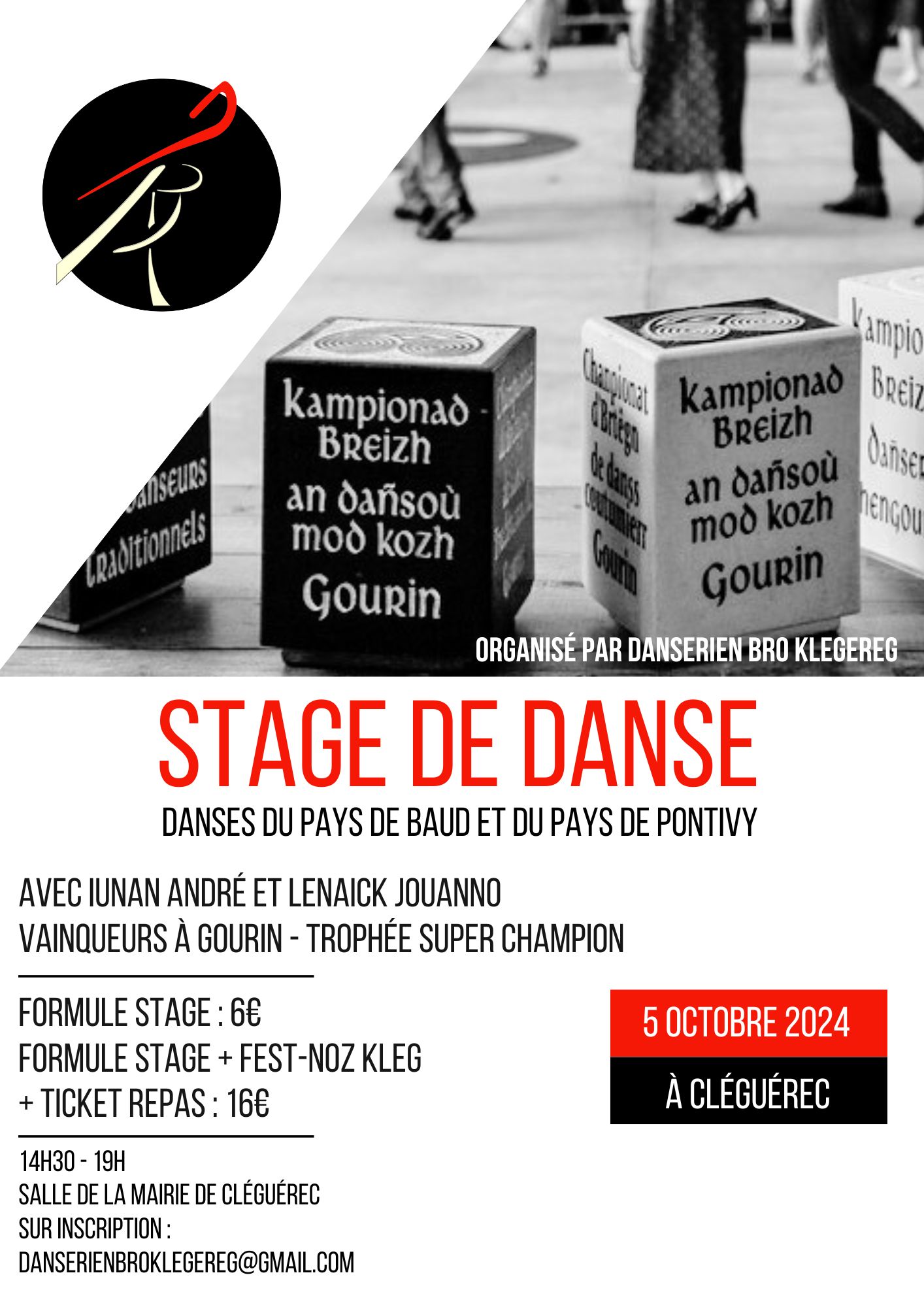 Dans le cadre de son fest-noz, le cercle Dañserien Bro Klegereg organise un stage sur les danses du pays de Baud et du pays de Pontivy.