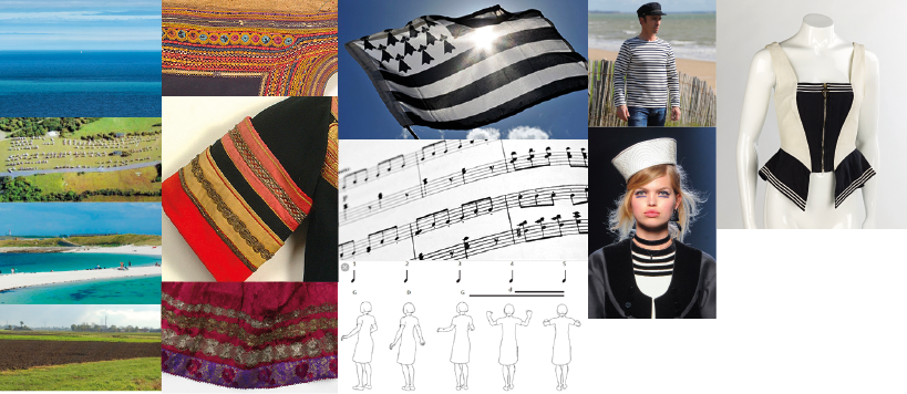 La bande horizontale fait partie de l’univers graphique breton, du Gwenn-ha-du aux marinières revisitées de Jean-Paul Gaultier. Elle peut aussi rappeler une formule d’appuis ou une partition.