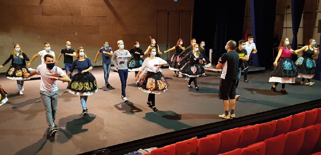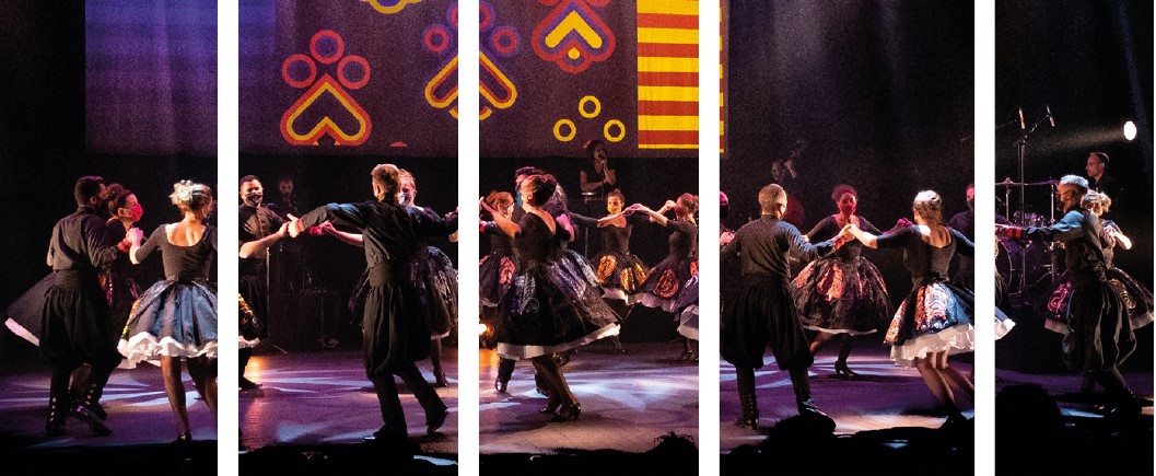 16h30, dimanche 4 octobre, nous y sommes. La salle est pleine (enfin, COVIDemment pleine). Les danseurs s’élancent, masqués pour le premier tableau haut en couleur. Le public est conquis. Quel plaisir de pouvoir à nouveau admirer ces corps qui dansent, sentir l’émotion et nos cœurs qui battent au rythme puissant des chants et des instruments ! Les regards, les intentions puissantes des danseurs, la musique emmènent le public pour un voyage dans la Bretagne que nous aimons. Le spectacle se déroule, dans le plaisir, avec passion mais aussi une vigilance de tous les instants de l’ensemble des danseurs et du staff de chorégraphes, pour que soient respectés les gestes de protection. Le message est important, malgré les épreuves auxquelles nous faisons face, les adaptations indispensables, nous, acteurs du spectacle vivant – plus vivant que jamais – nous faisons preuve de résilience.
