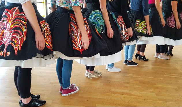 Samedi 26 septembre, par un matin ensoleillé, les danseurs sont là, au Triskell, à Pont-l’Abbé. Au-dessus des masques, les regards sont souriants et positifs…