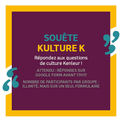 – Souète Kulture G : QCM sur plusieurs aspects patrimoniaux, disponible dès 9h37 et clôturé à 17h17