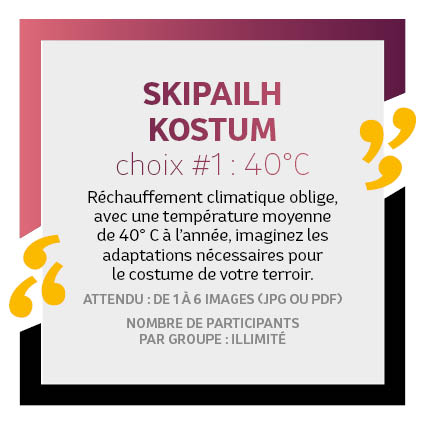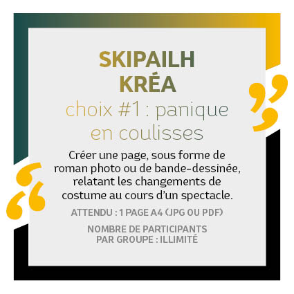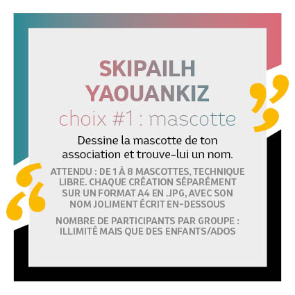 Voici les deux épreuves qu’on vous propose aujourd’hui, parce qu’on sait que vous êtes particulièrement créatifs.