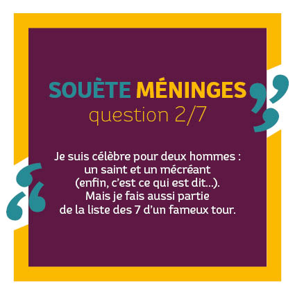 Je suis célèbre pour deux hommes : un saint et un mécréant (enfin, c’est ce qui est dit…). Mais je fais aussi partie de la liste des 7 d’un fameux tour.
