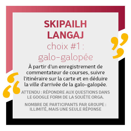 En guise de mise en jambes, nous vous proposons une épreuve (non-obligatoire) que vous pouvez réaliser avant le jour J : la Skipailh Échauffement !