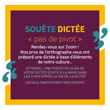 – Souète Dictée pas de pivot : dictée culturelle sur Zoom à 11h11