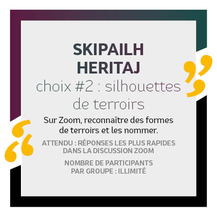 Choix #2 : silhouettes de terroirs. Connaissez-vous bien la carte Heritaj ? L’épreuve est simple : sur Zoom, on vous montre des formes et vous nous dites de quels terroirs il s’agit.