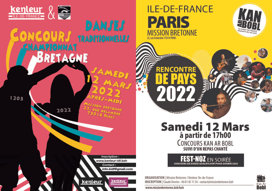 Kenleur Île-de-France et la Mission bretonne – Ti ar Vretoned organisent une sélection pour le championnat de Bretagne de danses traditionnelles de Gourin. Elle se déroulera à la Mission bretonne à Paris le 12 mars 2022, le même après-midi que la sélection du Kan ar Bobl. Les danseurs vont donc pouvoir concourir en région parisienne et se confronter à cinq danses issues de divers terroirs. Trois des cinq danses seront annoncées prochainement, les deux autres juste avant le concours pour réserver quelques surprises aux danseurs. Certaines de ces danses seront interprétées par les artistes de la sélection du Kan ar Bobl.