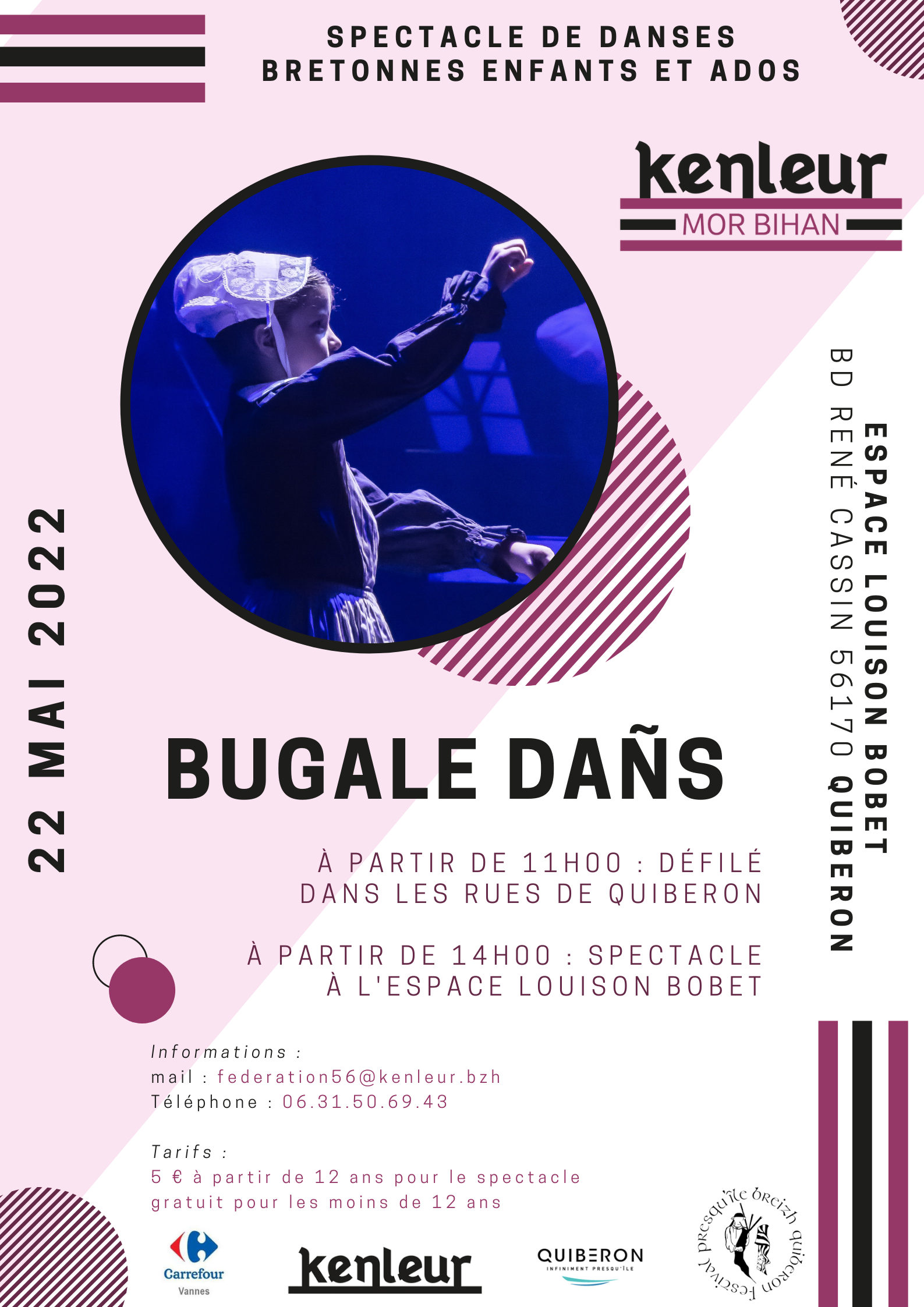 Dimanche 22 mai, les jeunes danseuses et danseurs des groupes de la fédération Kenleur Mor Bihan se retrouveront à Quiberon pour une journée de danses. Ils débuteront par un défilé dans les rues de la ville à partir de 11h, puis se produiront sur scène à partir de 14h00 à l’espace Louison Bobet. Venez nombreux les soutenir !