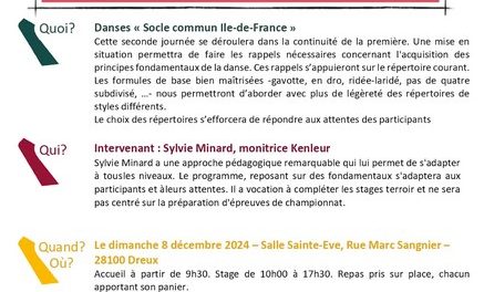 14h-17h30 : stage de vielle avec Marc Anthony, 40 €, salle des Roches Plates, inscription à la mairie de La Méaugon, 02 96 94 83 98.