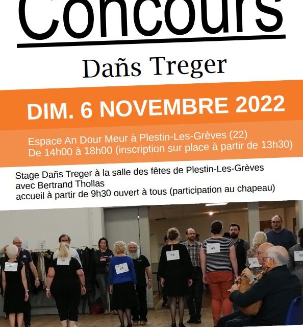 Venez nombreux au stage et au concours Dañs Treger (qualificatif pour la finale de Gourin en 2023) ! Rendez-vous le dimanche 6 novembre à Plestin-les-Grèves :