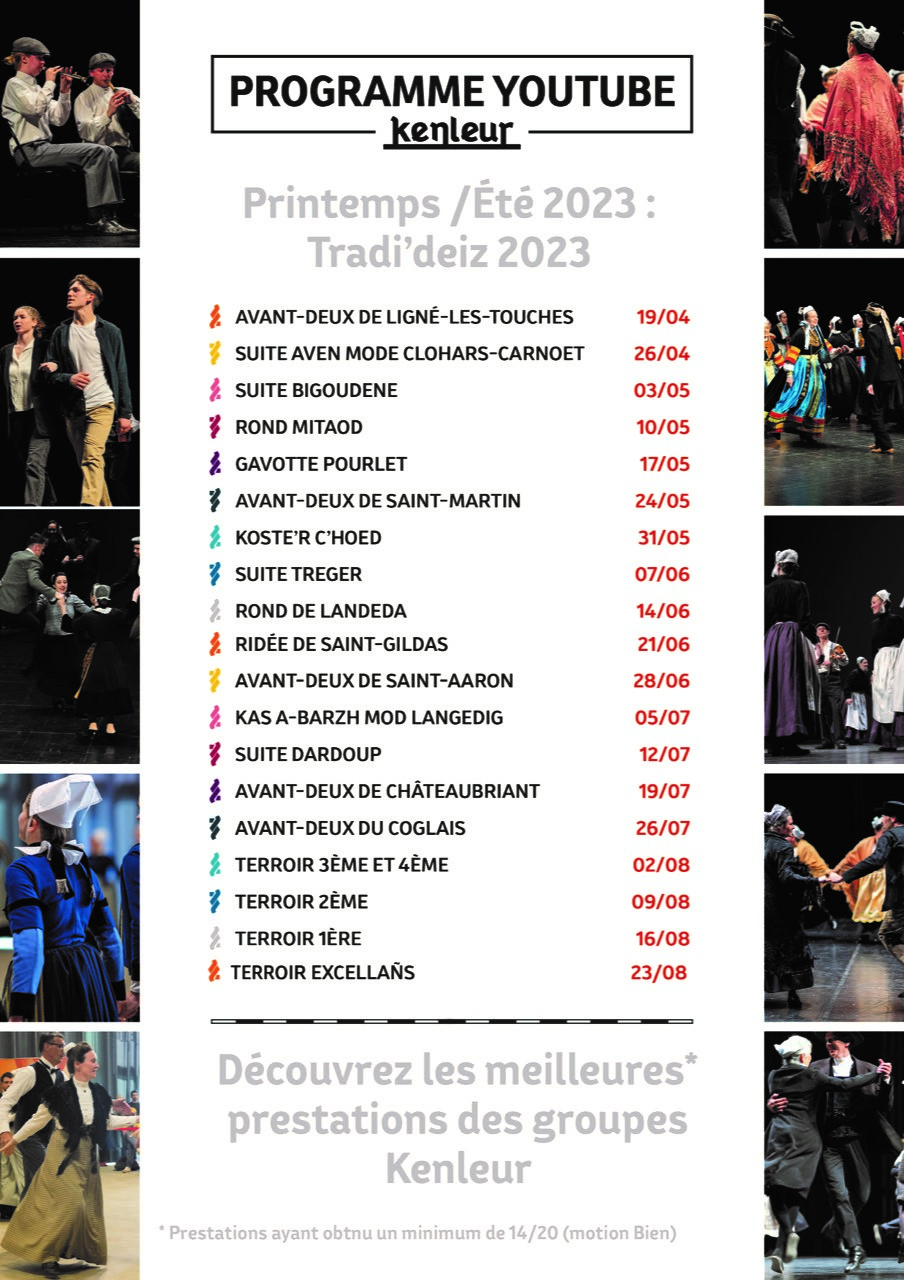 Retrouvez de nouvelles vidéos du Tradi’deiz 2023 tous les mardis sur notre chaîne YouTube  : ci-dessous les dates de diffusions jusqu’à fin août !