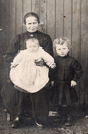 Leopold et Marcelle Bézard et leur mère vers 1918 à Miniac-sous-Bécherel, collection Jeanne Pairier