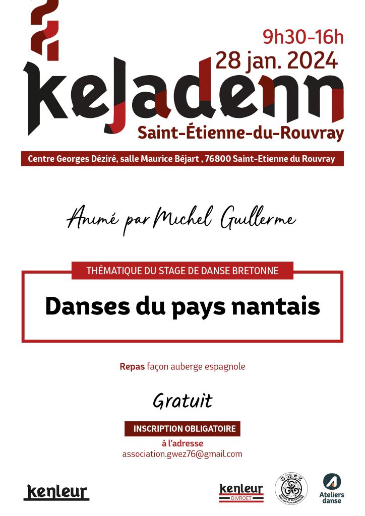 Kenleur Divroet organise le 28 janvier 2024 de 9h30 à 16h00 un Kejadenn sur les danses du pays nantais.