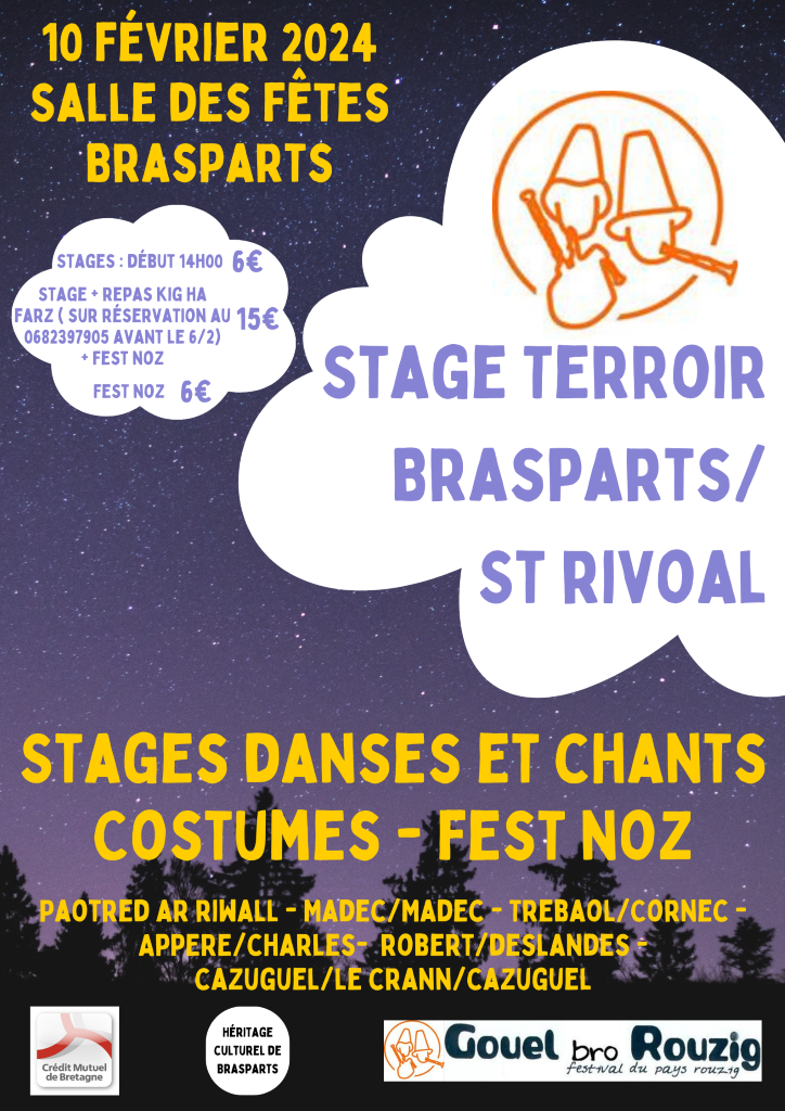 L’association Gouel bro Rouzig remet en place ses stages terroirs, liant la danse, le chant et le costume. Elle commencera le 10 février prochain par le pays de Brasparts Saint-Rivoal. Une journée à ne pas manquer, dédiée aux spécificités culturelles du “pays du pied droit”.