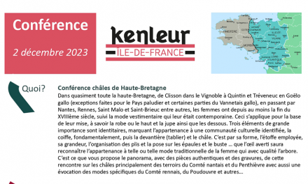 Depuis l’an dernier, les passionnés du vêtement traditionnel breton peuvent assister à une présentation par les groupes eux-mêmes d’une partie des costumes présentés sur scène. Devant un jury composé de trois spécialistes, les groupes ont 15 minutes pour expliquer leurs costumes, leurs sources, leur démarche… L’occasion de valoriser l’extraordinaire travail de reconstitution et de création mené par les groupes de Kenleur.