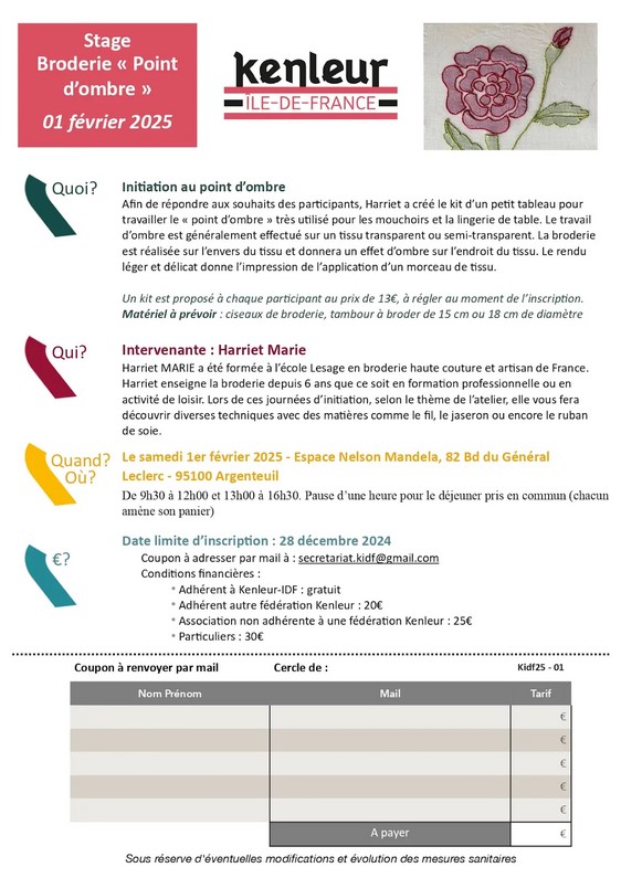 Le travail d’ombre est généralement effectué sur un tissu transparent ou semi-transparent. La broderie est réalisée sur l’envers du tissu et donnera un effet d’ombre sur l’endroit du tissu. Le rendu léger et délicat donne l’impression de l’application d’un morceau de tissu.