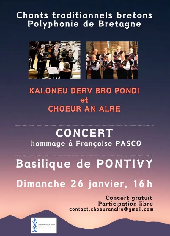 Un concert de chant choral sera donné en hommage à Françoise Pasco dans la basilique de Pontivy le dimanche 26 janvier à 16h.