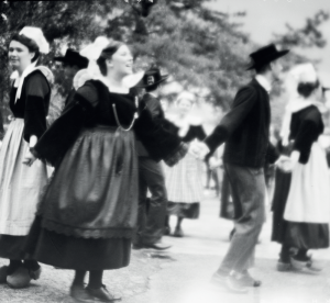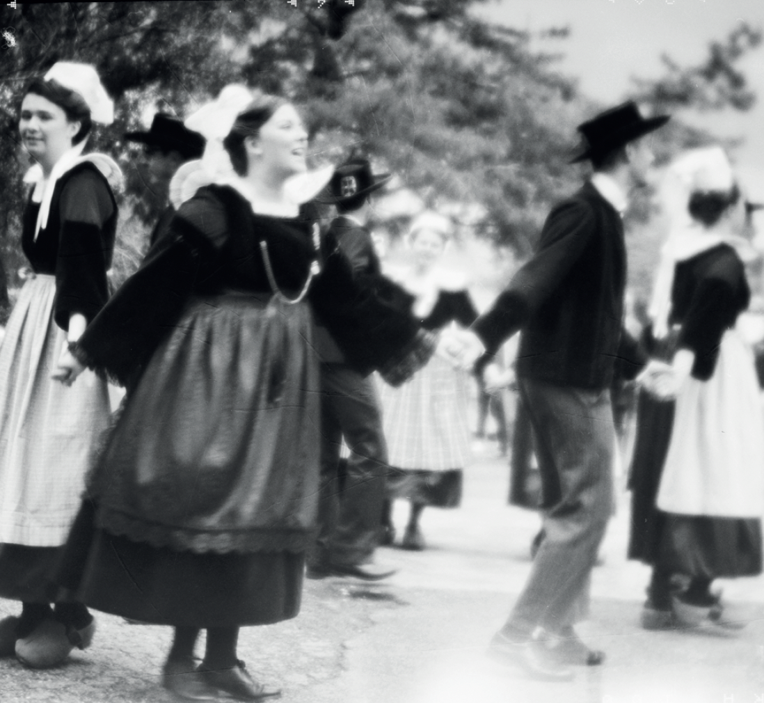 Sur une place bretonne, années 1920, la caméra miniaturisée et l’appareil photo compact transforment l’approche artistique. Trois citadins explorent la région fouesnantaise.