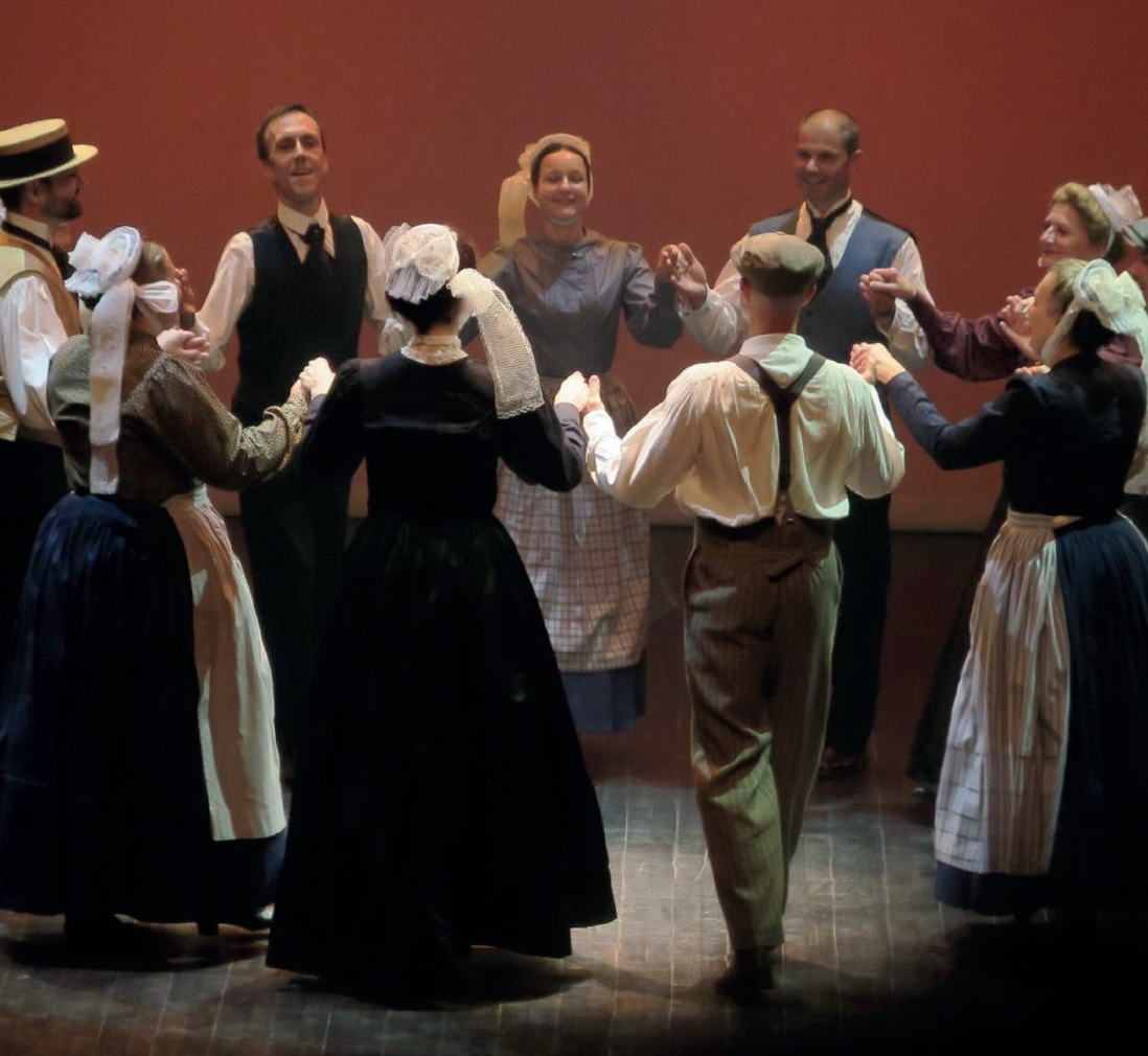 Juillet 1850. Après une journée de travail aux champs, les fermes qui se sont entraidées se retrouvent. Une fois la table dressée, repas, chants, danses et jeux illustrent ce moment de partage.
