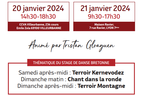 L’association des Bretons de Lyon organise un stage le samedi 22 avril animé par par Mickaël...