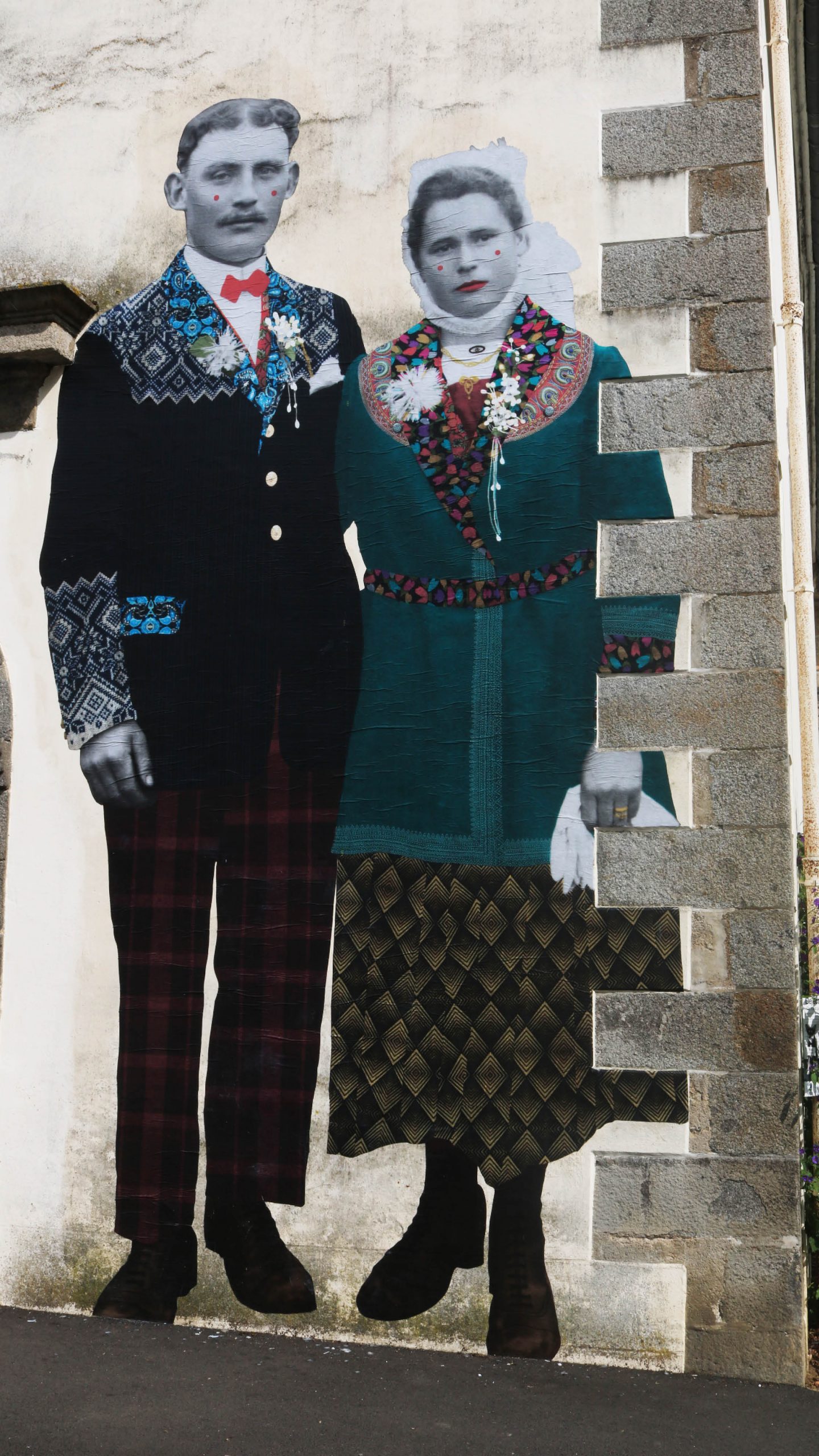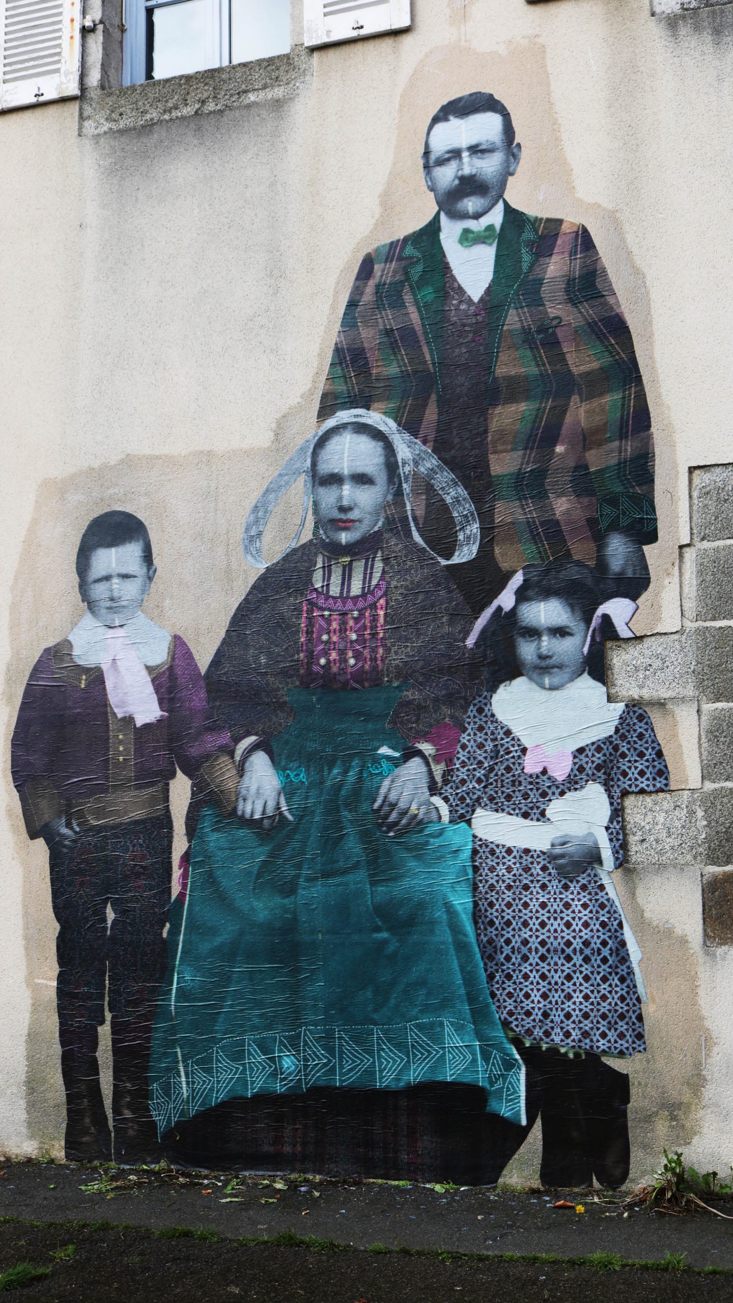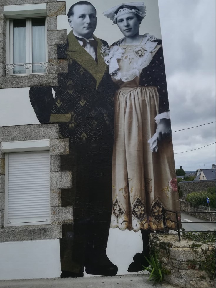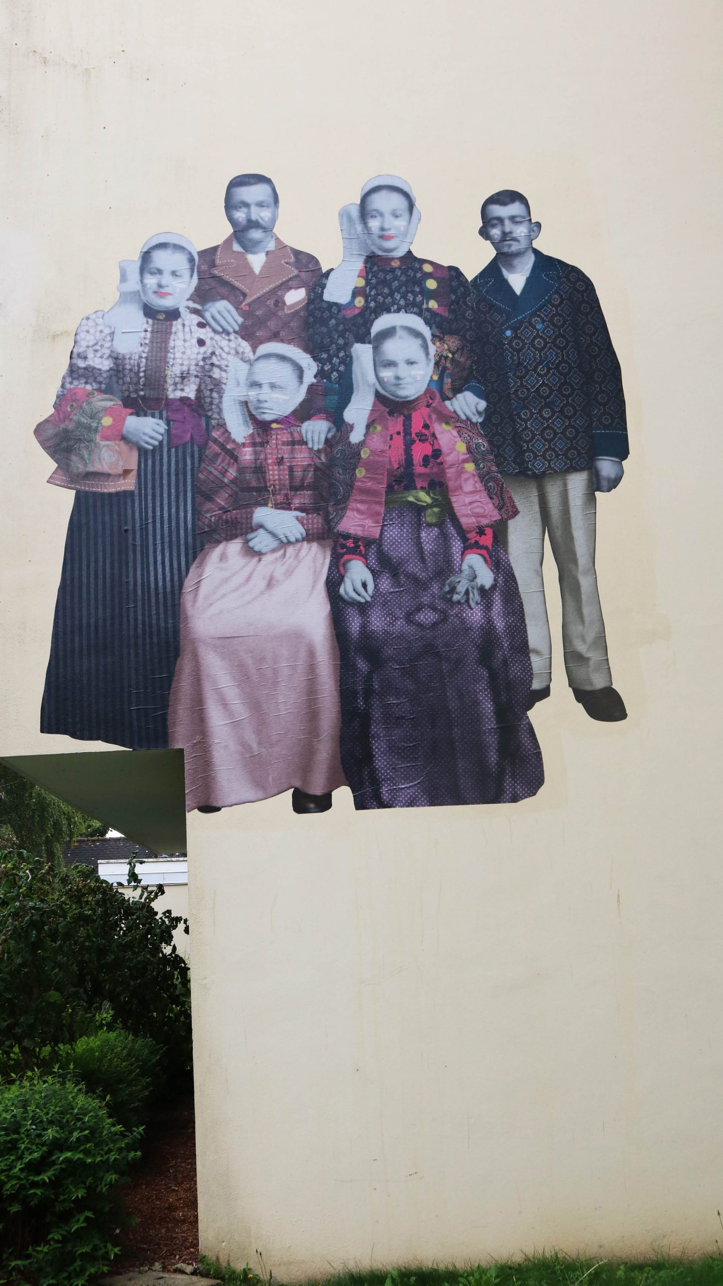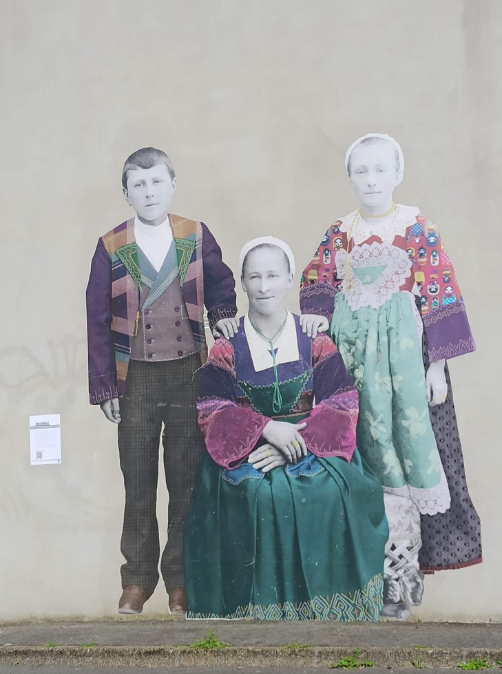 En 2018, la confédération War ‘l Leur expérimentait avec succès une autre idée de la diffusion de la matière bretonne par le biais de collages urbains. Les sujets, des découpes géantes de personnes en vêtement traditionnel issus de photographies anciennes venaient embellir des façades de bâtiments pour créer un parcours d’exposition.