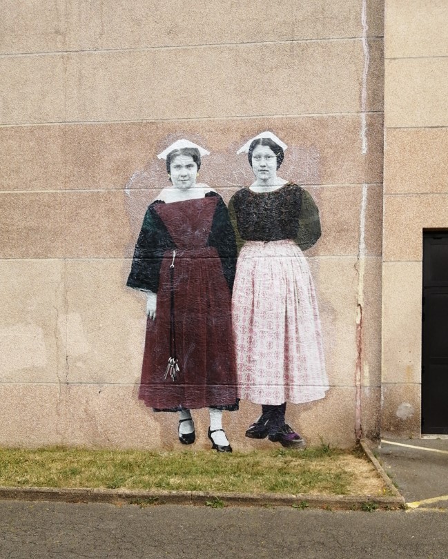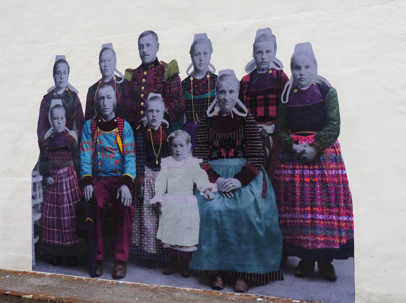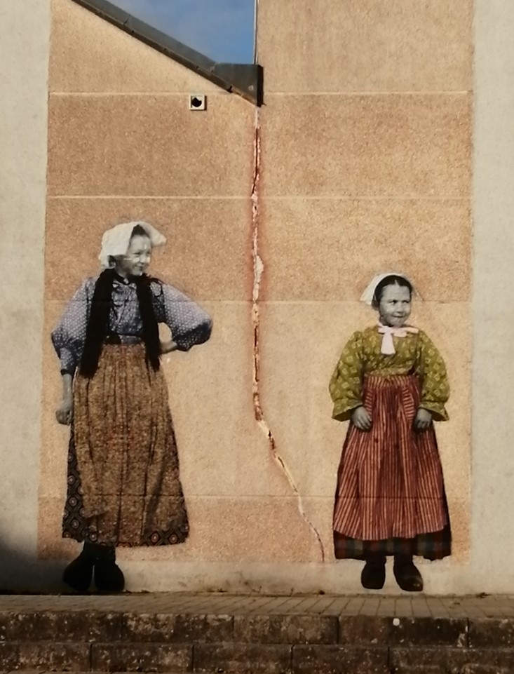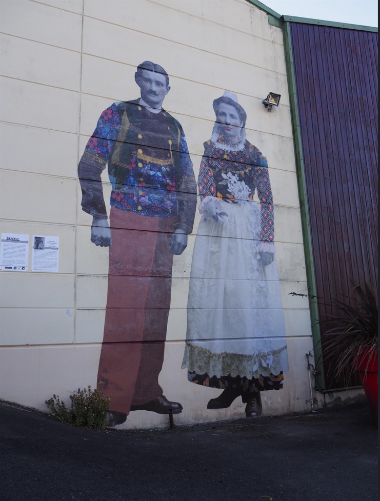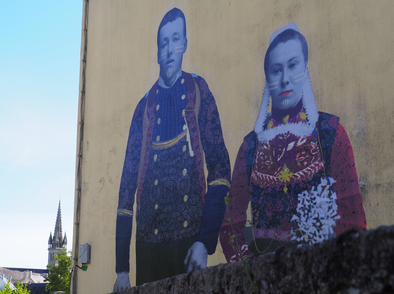 En 2018, la confédération War ‘l Leur expérimentait avec succès une autre idée de la diffusion de la matière bretonne par le biais de collages urbains. Les sujets, des découpes géantes de personnes en vêtement traditionnel issus de photographies anciennes venaient embellir des façades de bâtiments pour créer un parcours d’exposition.