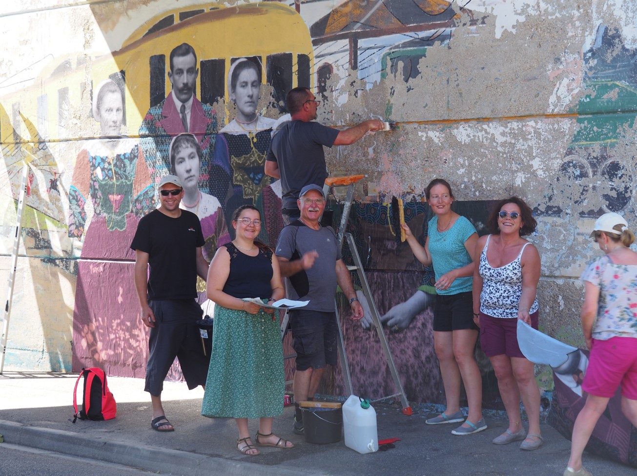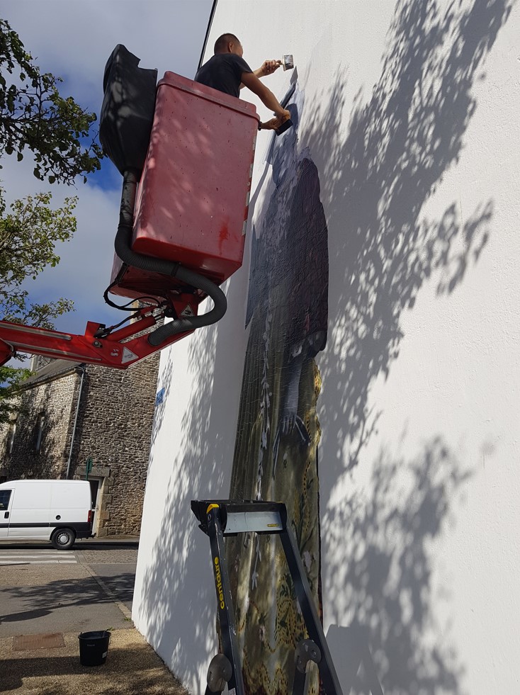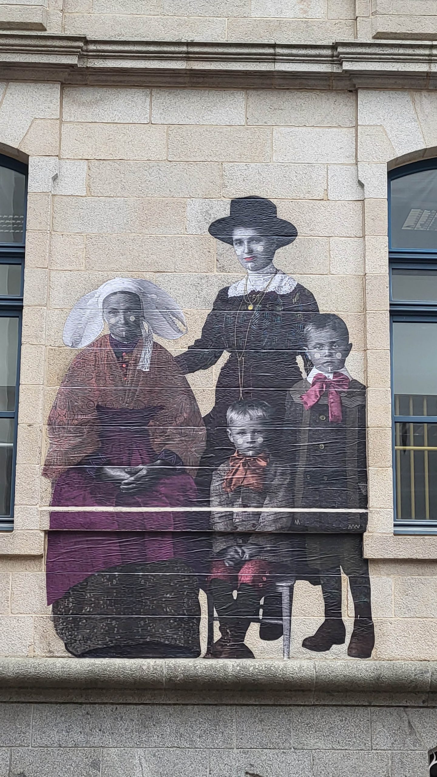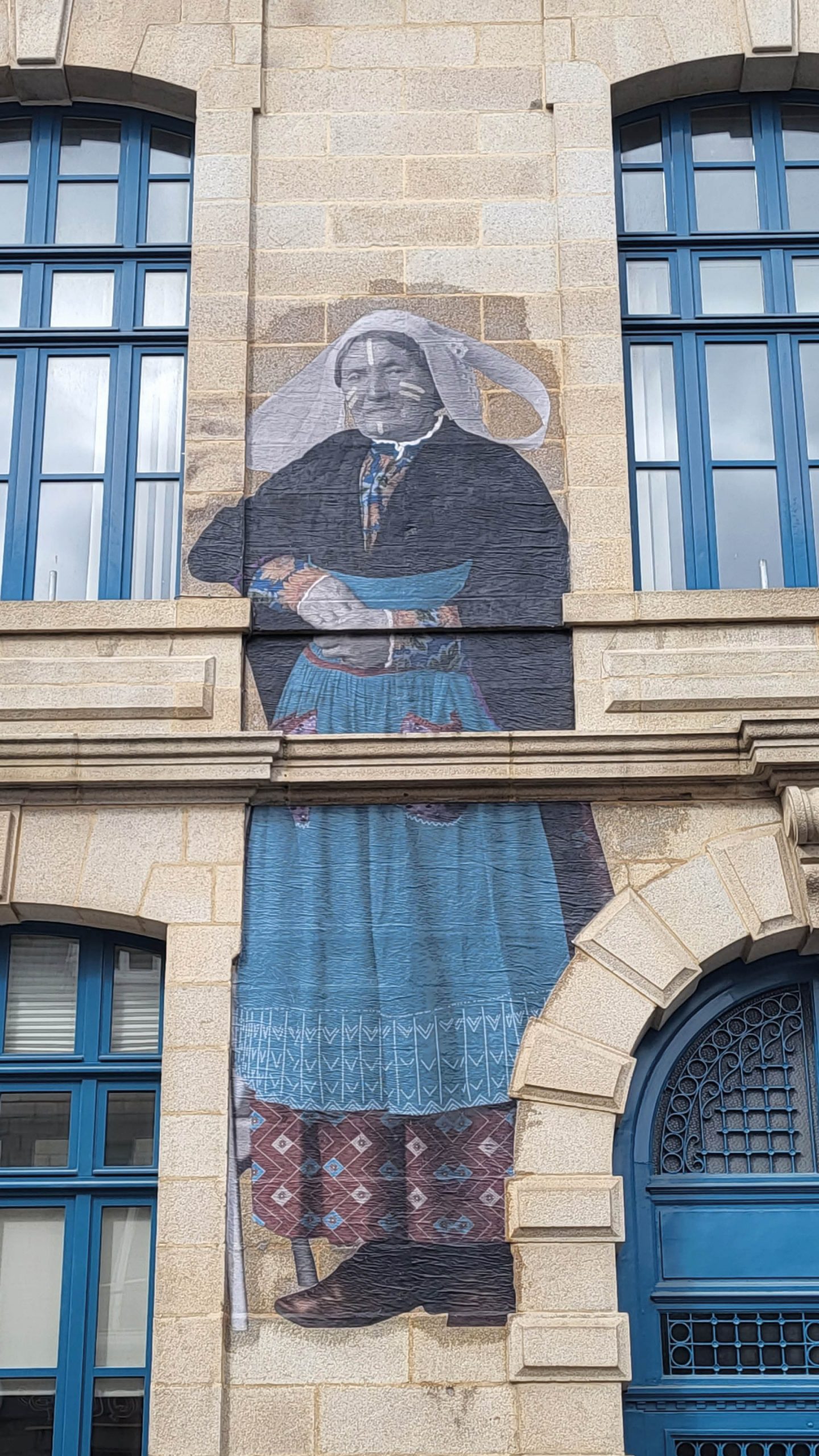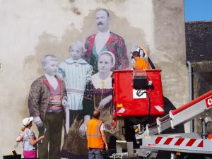 En 2018, la confédération War ‘l Leur expérimentait avec succès une autre idée de la diffusion de la matière bretonne par le biais de collages urbains. Les sujets, des découpes géantes de personnes en vêtement traditionnel issus de photographies anciennes venaient embellir des façades de bâtiments pour créer un parcours d’exposition.