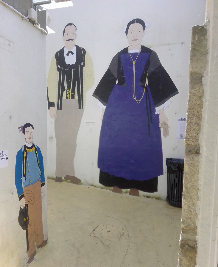 Mixer les textiles d’hier et d’aujourd’hui, confronter la couleur aux supports d’ordinaire noir et blanc, dérouter les graphismes d’un terroir ou d’une culture avec un autre pour aborder la vaste question du patrimoine vestimentaire traditionnel en Bretagne, c’est le projet artistique « street art » que la confédération Kenleur vous propose.