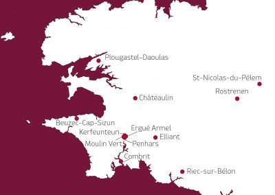 à Auray, Carhaix-Plouguer, Clohars-Carnoët, Lorient, Guerlédan, Plérin-Sur-Mer, Plomelin, Plumergat, Quintin, Saint-Brieuc