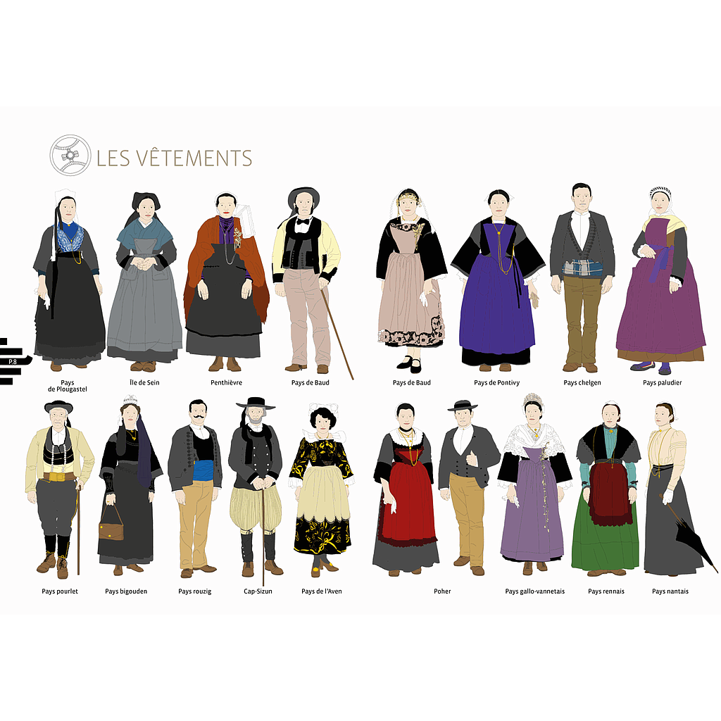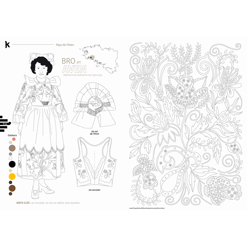 18 modes vestimentaires, 18 pages créatives, une carte de Bretagne, deux masques à reproduire.