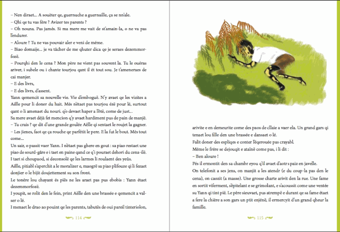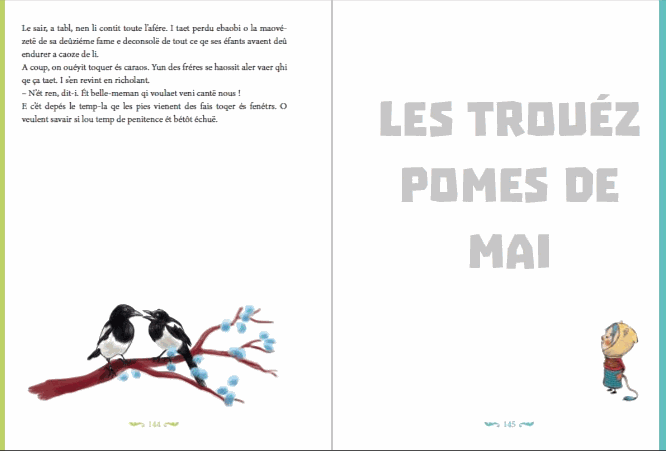E, fighure-tai q’un paizan gheûz qi perdit son pourcè finit medecin. Sia. Sia. C’ét réel. Ou ghere de meins.E, come t’és enjainë, je ses qe ça va te haiter de savair, en finale, pourqhi qe les pies toqent és câriaos e coment qe nen s’en chevit pour fére les petites crépes ao chacolat mirabilia qi cotissent.Pasqe tous les contes-la sont den le livr. E ben d’aotrs en pus qi sont pour te debober !