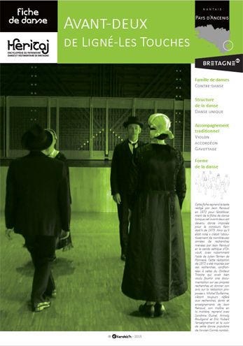 Cette fiche reprend le texte rédigé par Jean Renaud en 1972 pour l’établissement de la fiche de danse lorsque cet avant-deux est devenu danse imposée pour le concours Kendalc’h de 1973. Ainsi qu’il était noté « c’était l’aboutissement de nombreuses années de recherches menées par Jean Renaud et le cercle celtique d’Orvault,avec notamment l’aide de Julien Terrien de Pannecé. Cette rédaction de 1972 a été inspirée par ces recherches, confrontées à celles du Docteur Tricoire qui avait bienvoulu fournir une documentation sur ses propres recherches et donner son avis sur la rédaction proposée». Michel Guillerme, s’étant toujours référé aux recherches, écrits et enseignements de Jean Renaud, son maître en la matière, reprend avec Sandrine Guinel, Annaïg Bouligand et Eric Hubert l’enseignement et le suivi de cette danse populaire de l’ancien Comté nantais.