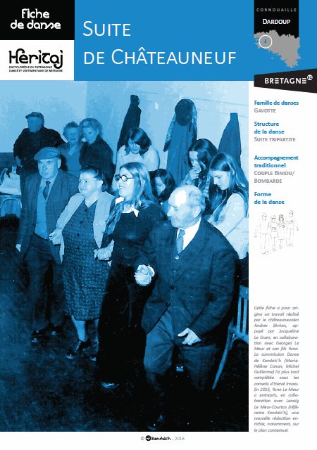 Cette fiche a pour origine un travail réalisé par le châteauneuvien Andrev Birrien, appuyé par Jacqueline Le Guen, en collaboration avec Georges Le Meur et son fils Yann. La commission Danse de Kendalc’h (Marie-Hélène Conan, Michel Guillerme) l’a plus tard complétée sous les conseils d’Hervé Irvoas. En 2015, Yann Le Meur a entrepris, en collaboration avec Lenaig Le Meur-Courtas (référente Kendalc’h), une nouvelle rédaction enrichie, notamment, sur le plan contextuel.