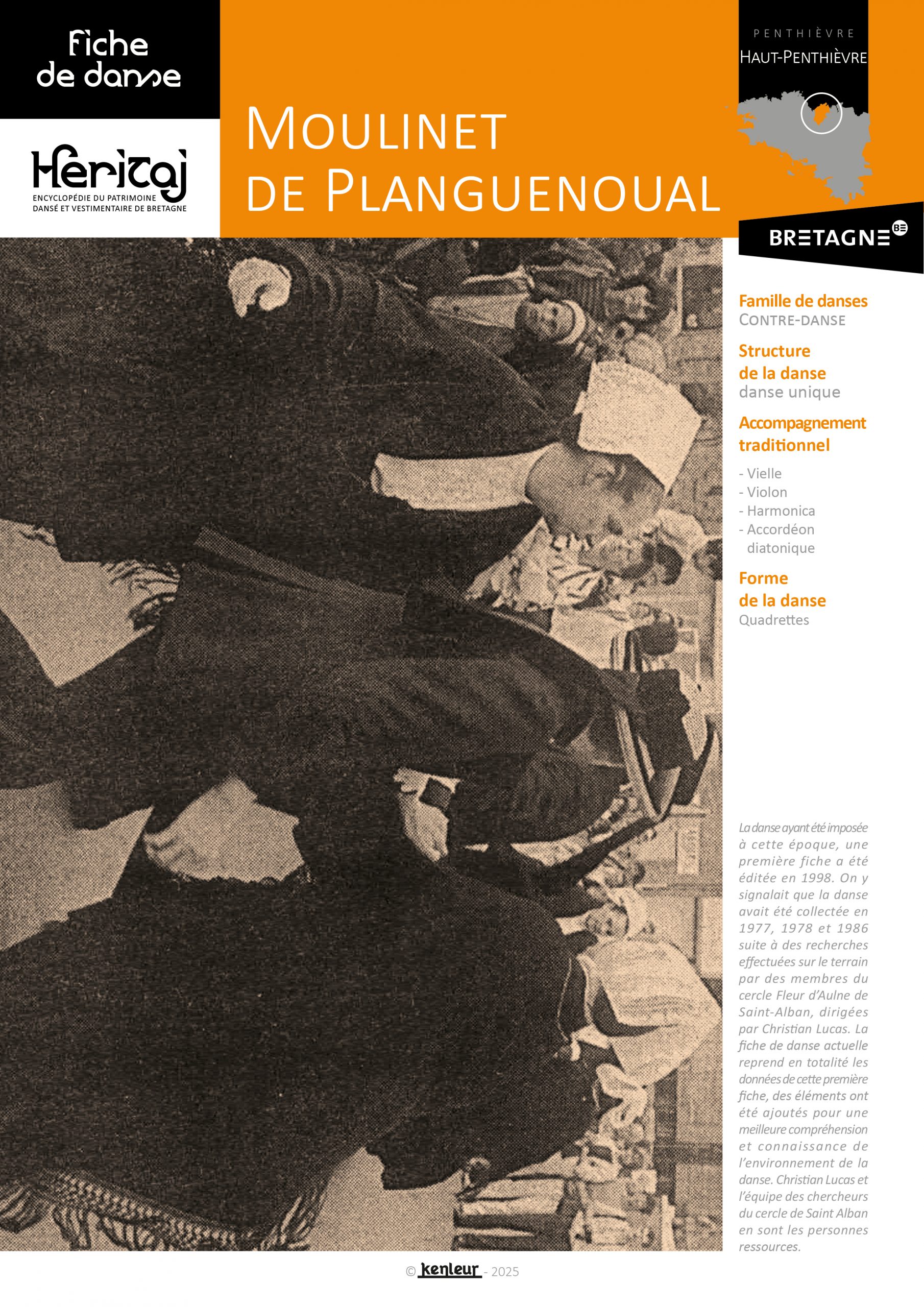 cercle Fleur d’Aulne de Saint-Alban, dirigées par Christian Lucas. La fiche de danse actuelle reprend en totalité les données de cette première fiche, des éléments ont été ajoutés pour une meilleure compréhension et connaissance de l’environnement de la danse. Christian Lucas et l’équipe des chercheurs du cercle de Saint Alban en sont les personnes ressources.
