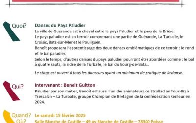 L’ancien stage “Miz Du” se recentre sur la danse traditionnelle et propose un nouveau parcours “terroirs” pour tous publics. A composer selon vos envies !
