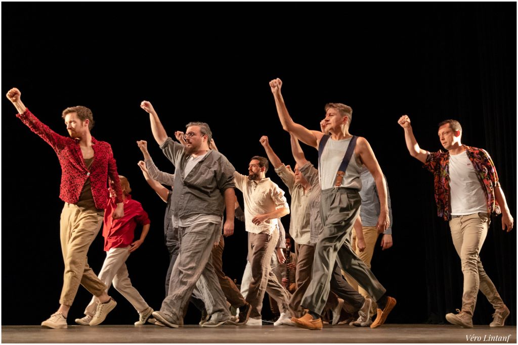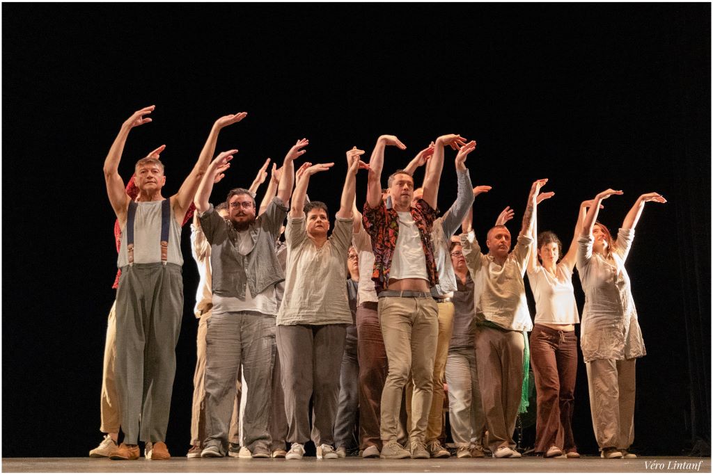 Les danseurs ont laissé les costumes traditionnels au musée. Ils ne sont pas non plus assignés à une représentation genrée. Des tissus habillent l’espace, métamorphosent les corps.