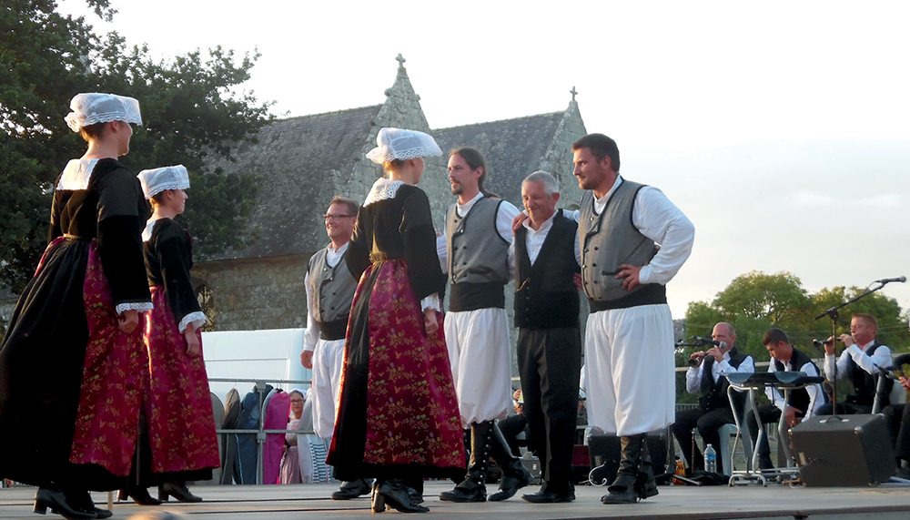 Environ dix musiciens les accompagnent à la bombarde, au biniou, à la veuze, à la clarinette, à l’accordéon et au chant.
