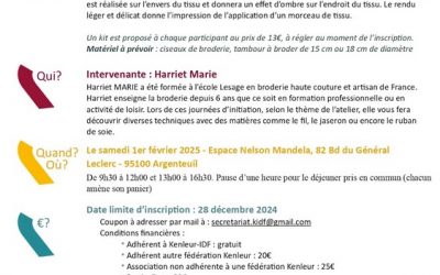 Infos pratiques Dimanche 9 novembre 2025 de 9h à 17h Lieu : Kenleur - 1, rue de Suède - Auray Nombre de places : La formation en quelques mots : Une époque à la loupe. 1925-2025 : 100 ans de l’art déco Inauguré le 28 avril 1925 entre le Grand Palais et les Invalides,...
